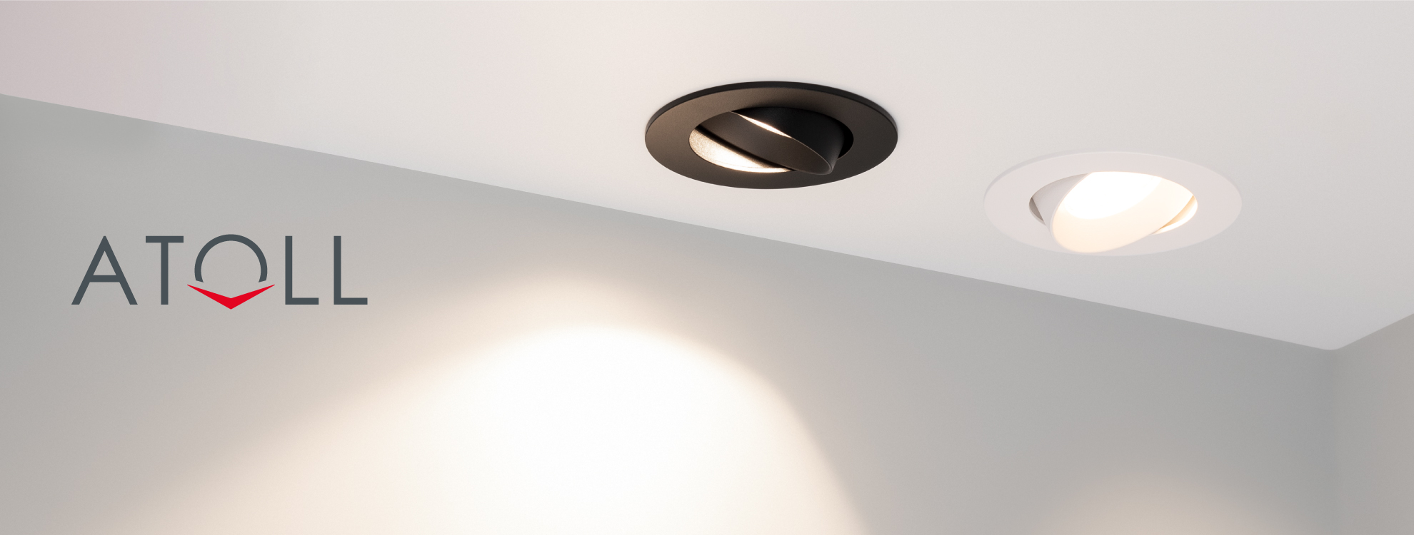 Среди даунлайтов ATOLL вы найдете модели с узким (36°) и средним углом излучения (60°), что позволяет создать в одном пространстве акцентное и основное освещение в едином стиле.