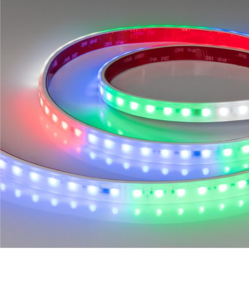 Большой выбор светодиодных лент с управлением по протоколу DMX, благодаря которому можно создавать многоцветные световые эффекты различной сложности: от простейших эффектов до вывода динамических изображений на мультимедийные экраны.