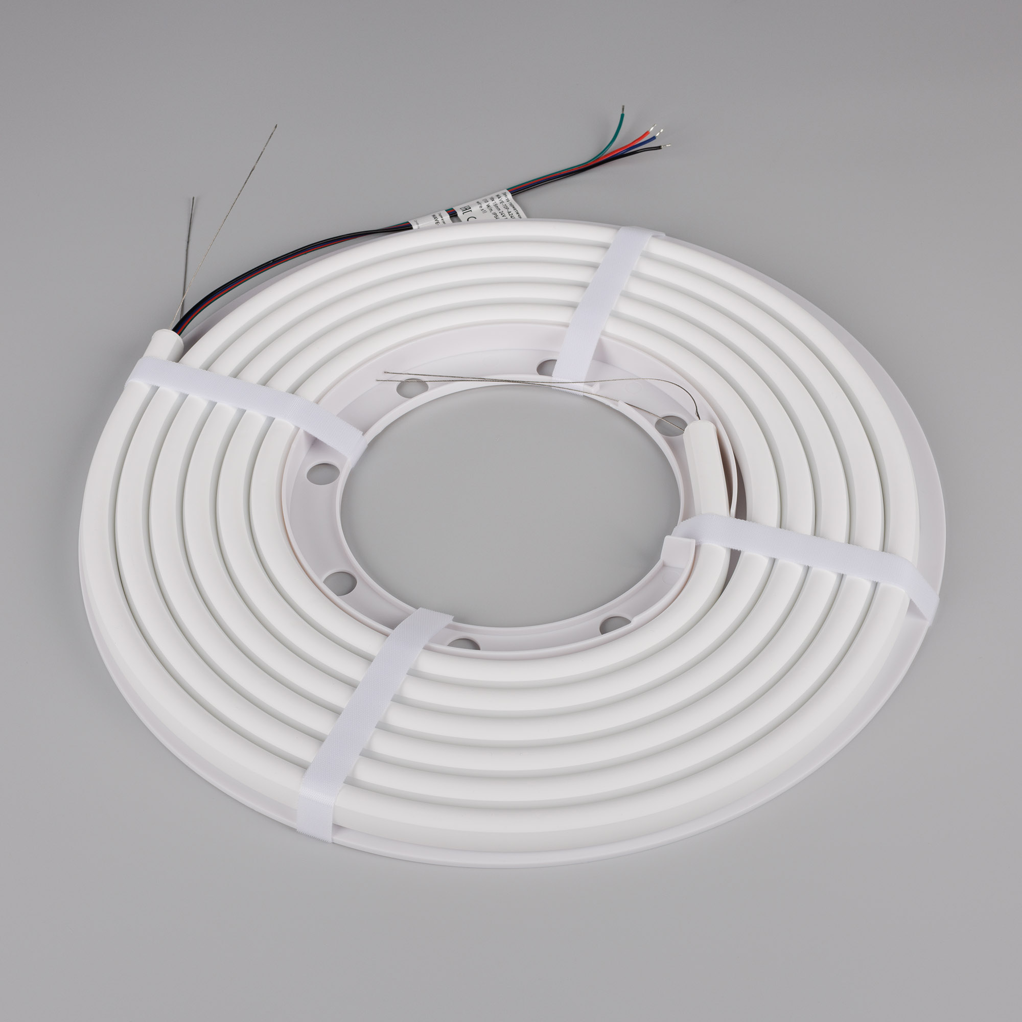 Гибкая герметичная лента (неон серии WAVE), сечение 18×15 мм с тросом-натяжителем. Светодиоды SMD2835 240 шт/м. Цвет свечения RGB, угол излучения 360°. Мощность 10 Вт/м, питание 24 В. Класс пылевлагозащиты IP54. Размеры 5000×18×15 мм. Мин. отрезок 50 мм. Изгиб согласно метки на корпусе, минимальный радиус изгиба 150 мм. Кабель питания длиной 500 мм, вывод с одной стороны вдоль линии сечения неона. Катушка 5 м. Цена за 1 м. Гарантия 3 года.