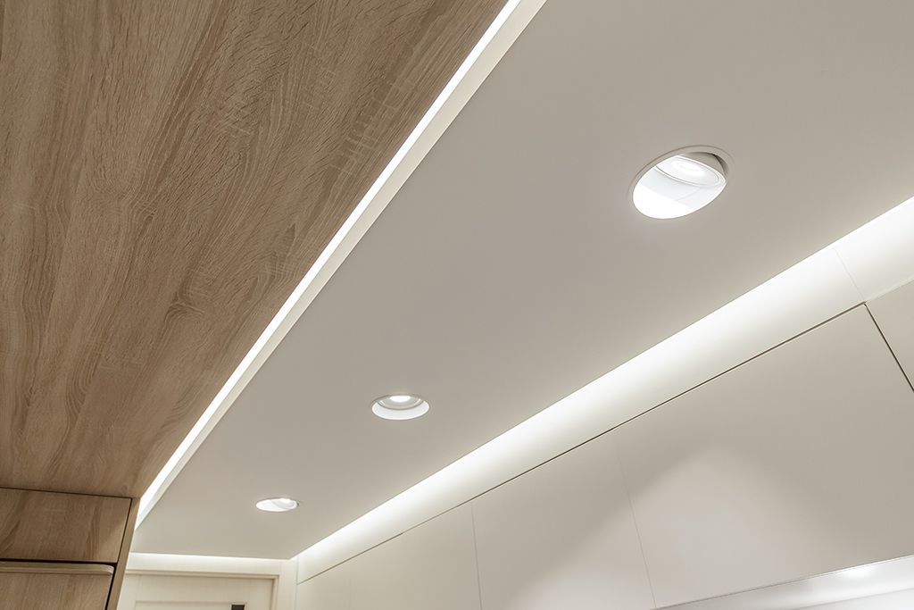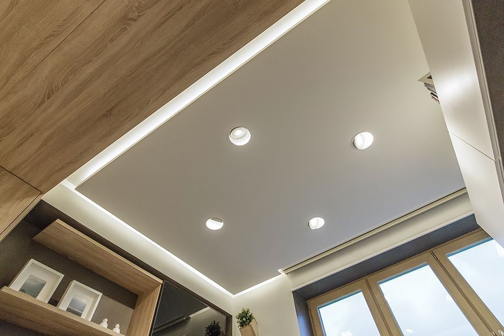 В проекте использовалась светодиодная лента класса LUX arlight® RT 2-5000 24V теплого свечения (2700К). С помощью ленты выделили потолок в зонах вокруг портала. Таким образом, потолок стал «парящим», а портал дополнительно подчеркнули с помощью освещения. В ленте используются светодиоды высокой яркости (56 30) и с хорошей цветопередачей. Благодаря этому установленная светодиодная лента может использоваться в качестве основного освещения, создав мягкое и комфортное освещение, а не только как декоративная подсветка.
