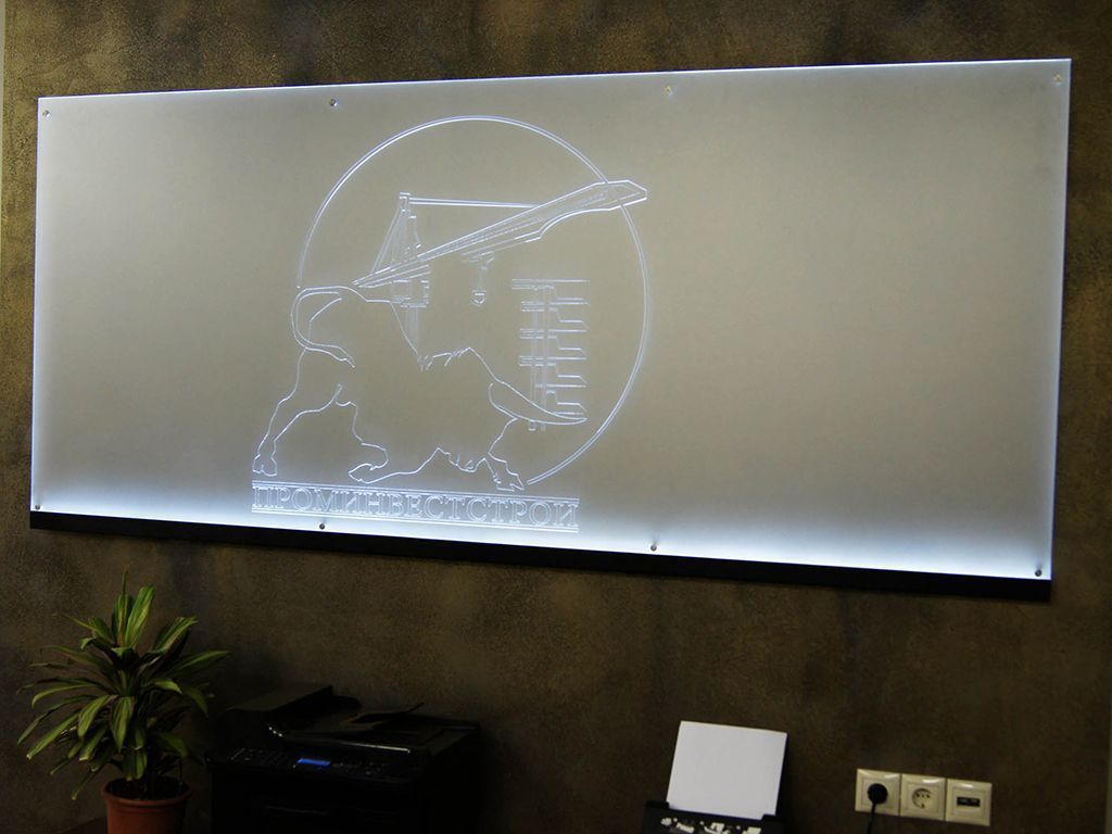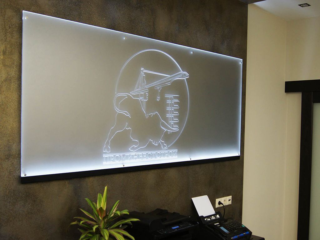 Первый тип - торцевая подсветка стекла или оргстекла (плексигласа). Но поверхности материла производится лазерная гравировка надписи, узора или рисунка, а светодиодная лента устанавливается с торцевой части стекла. При такой установке светятся только выгравированные элементы.